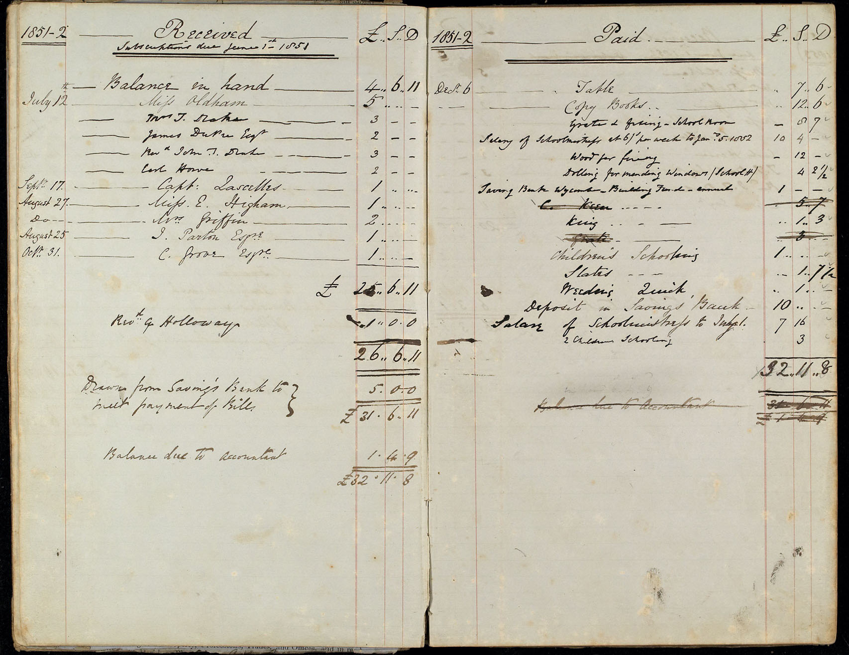 Deed of Conveyance and Accounts 1850-1899