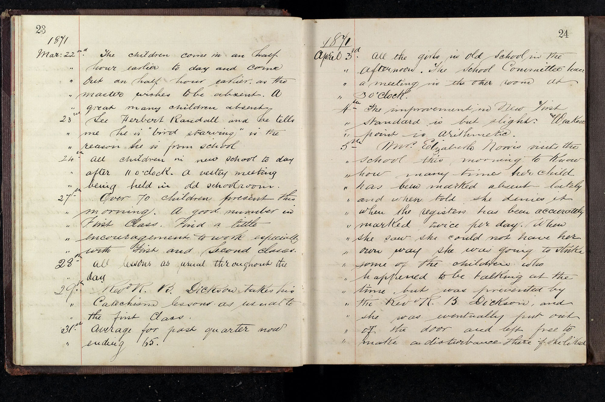 School Log 1871 to 1888