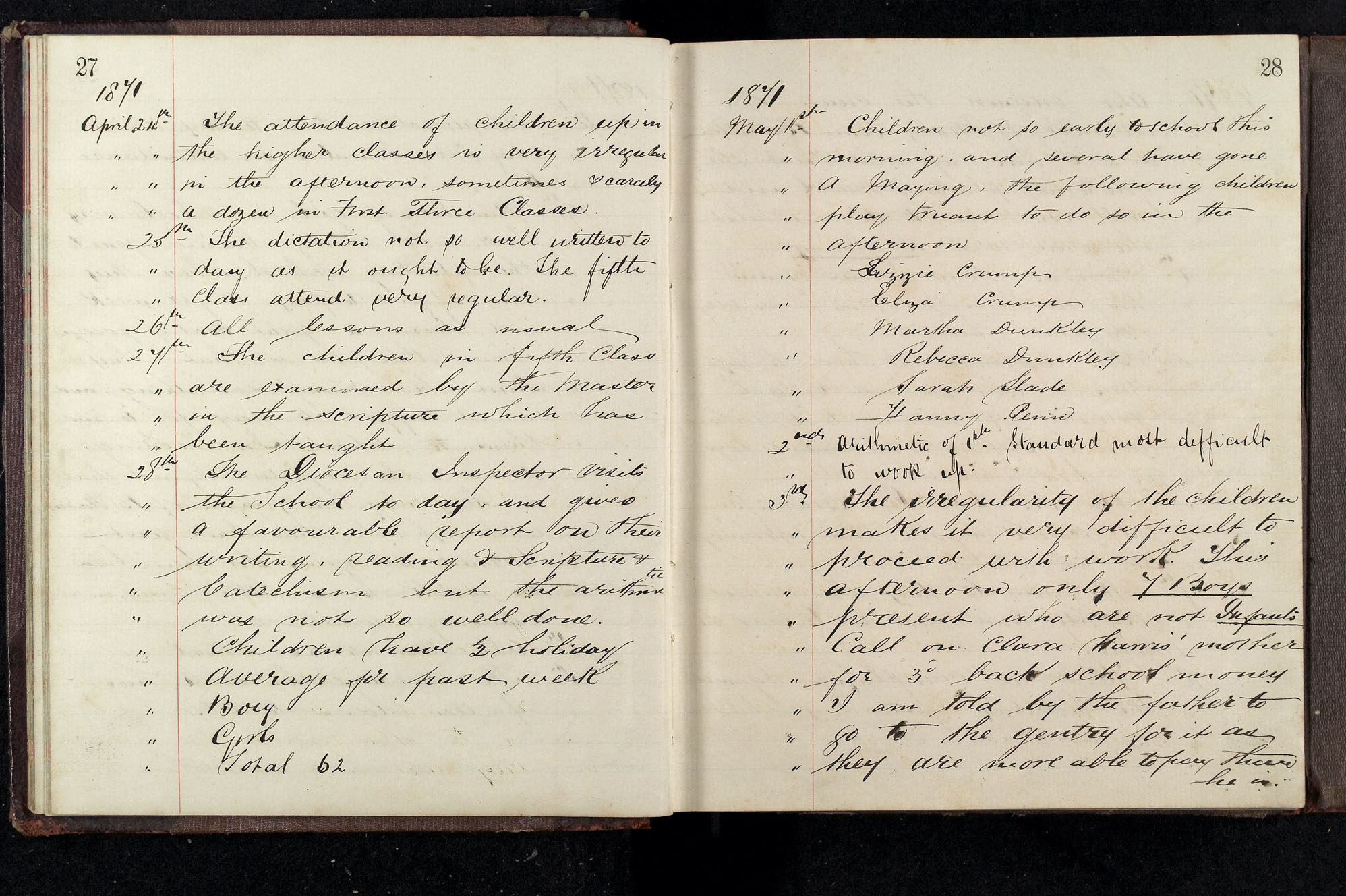 School Log 1871 to 1888