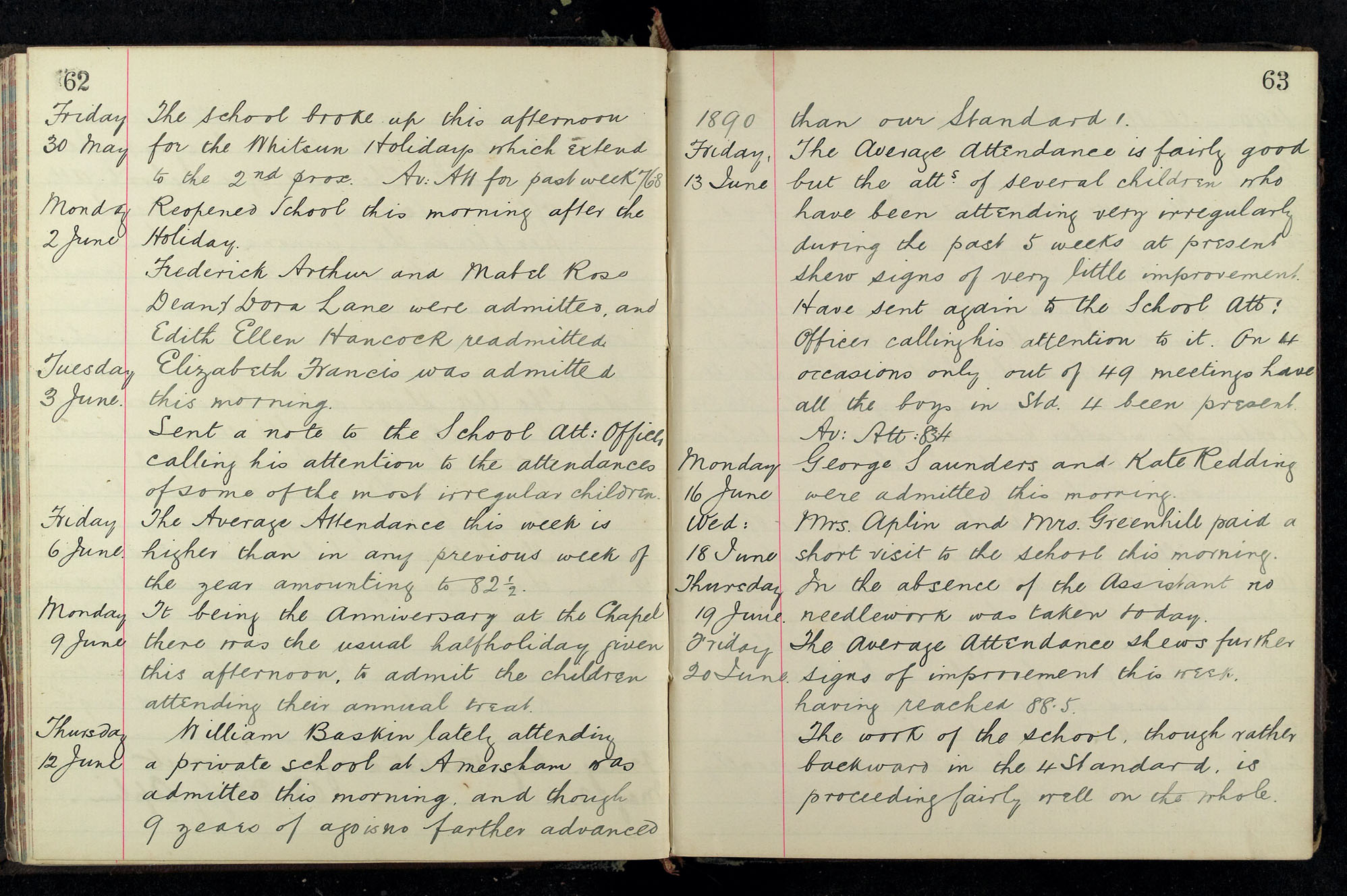 School Log 1888 to 1899