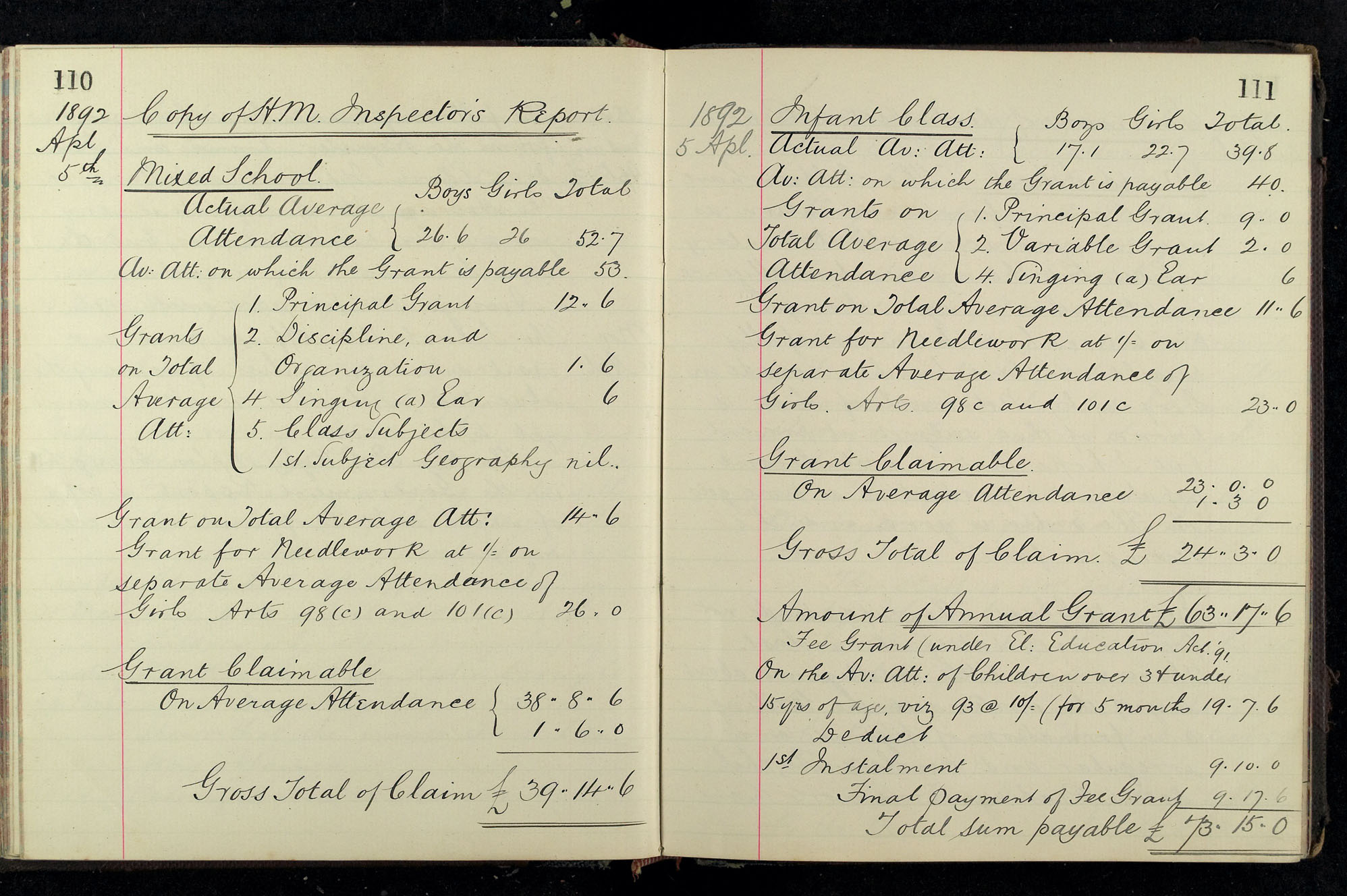 School Log 1888 to 1899