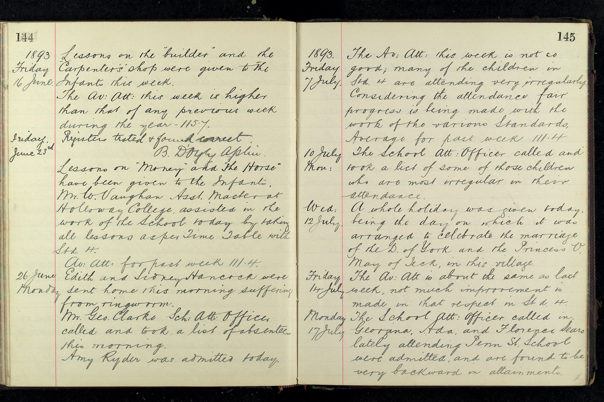 School Log 1888 to 1899