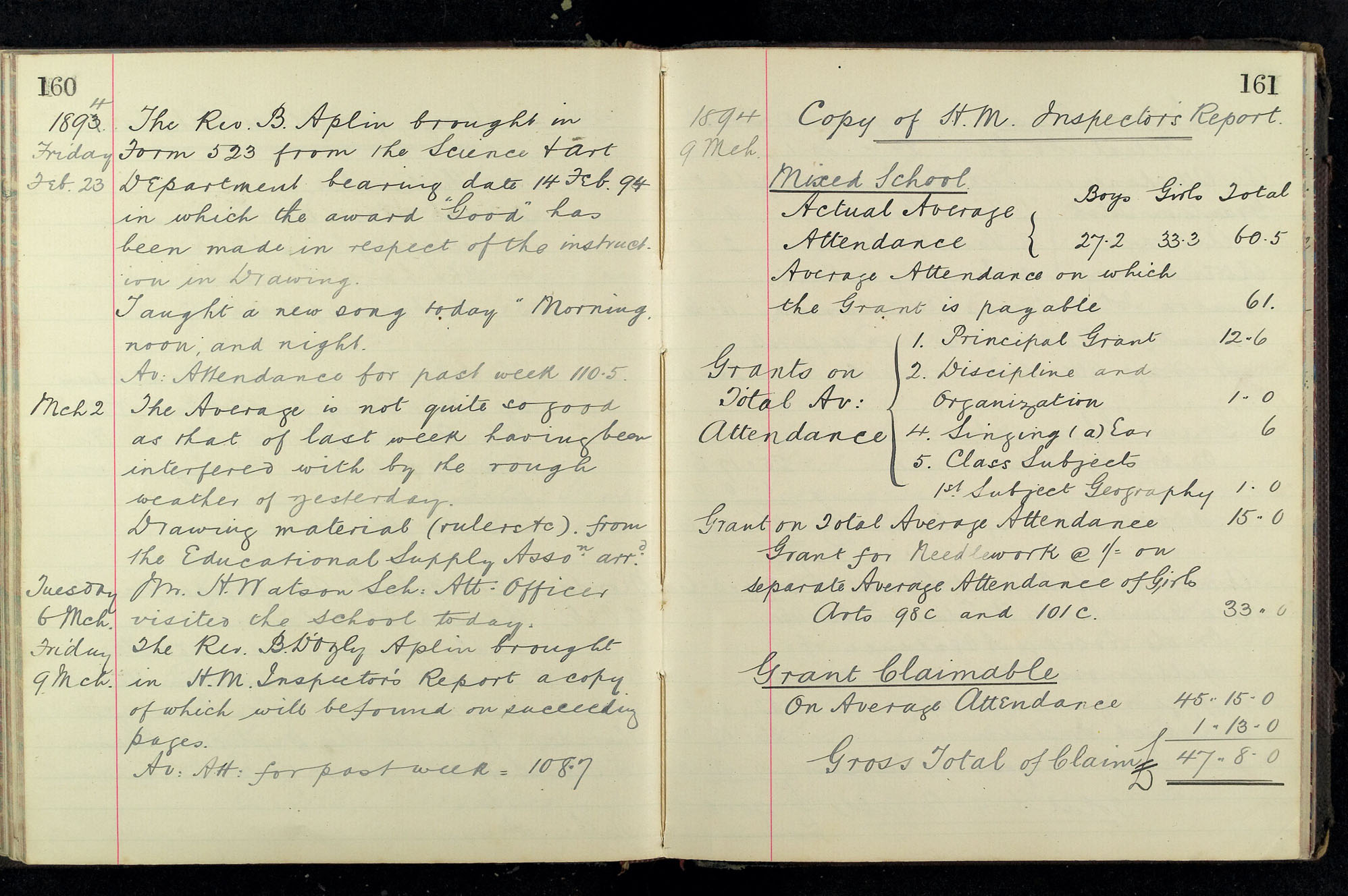 School Log 1888 to 1899