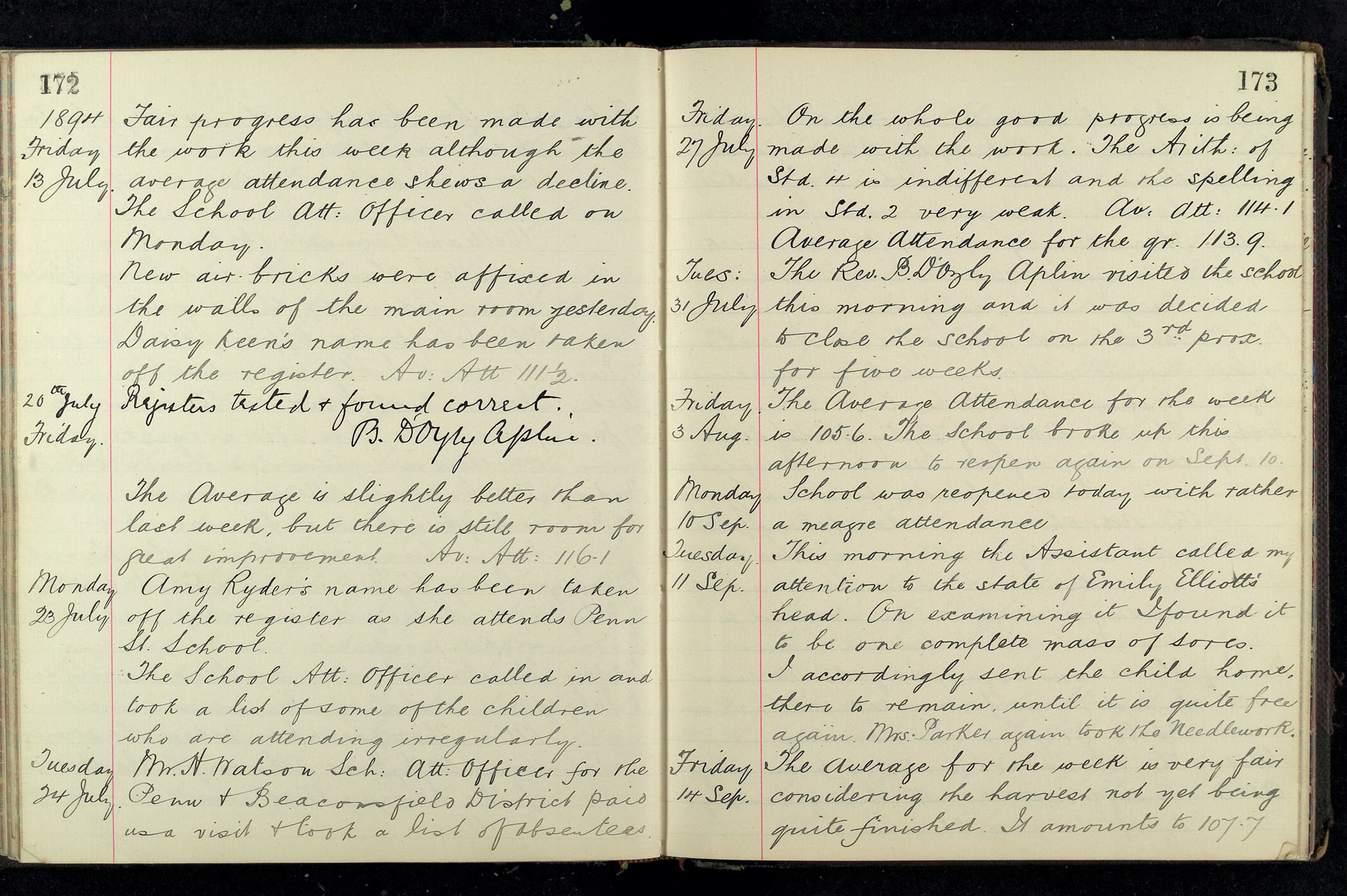 School Log 1888 to 1899
