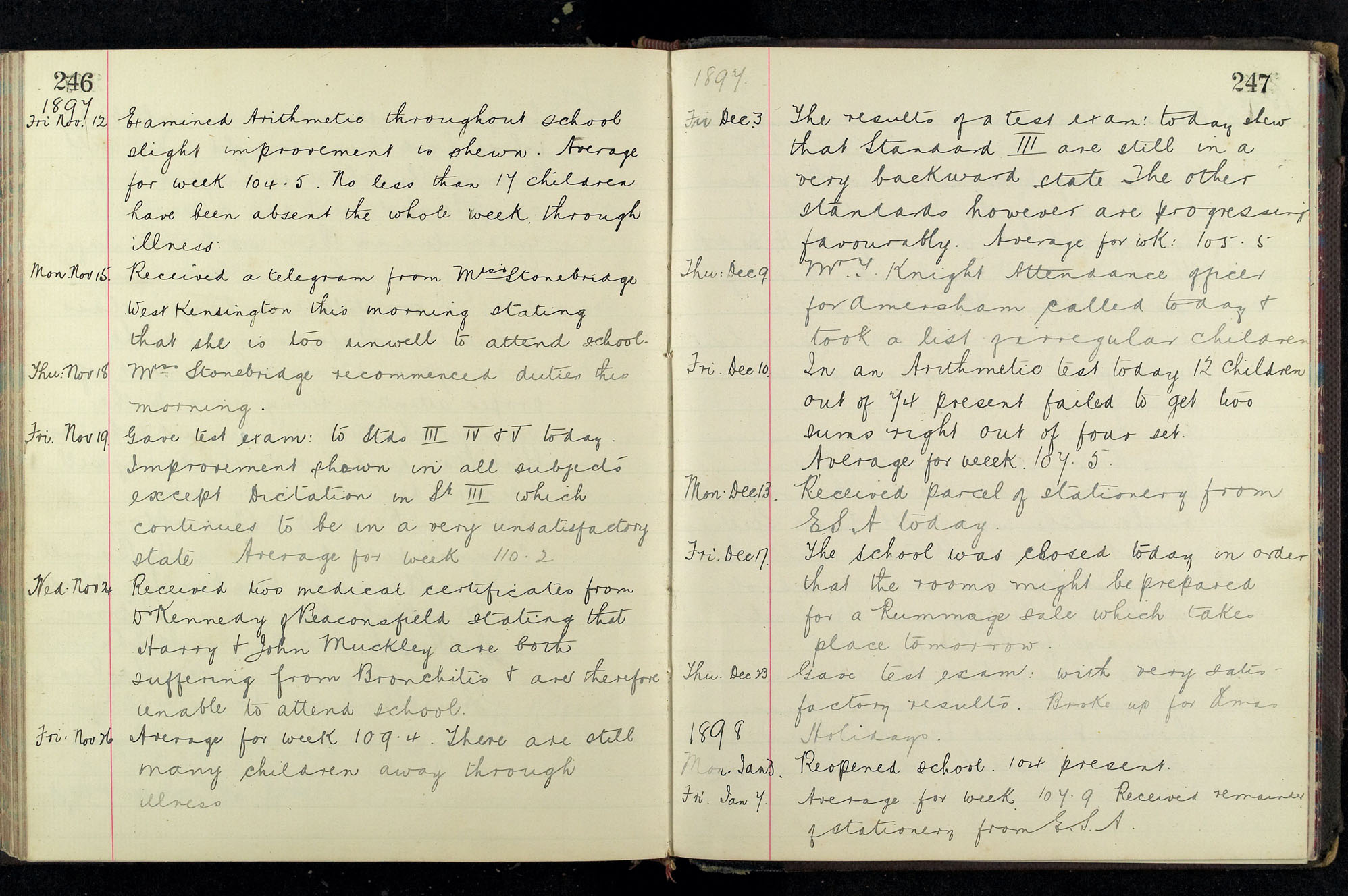 School Log 1888 to 1899