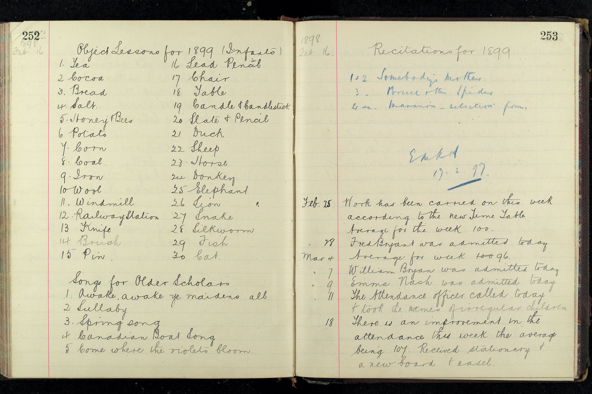 School Log 1888 to 1899