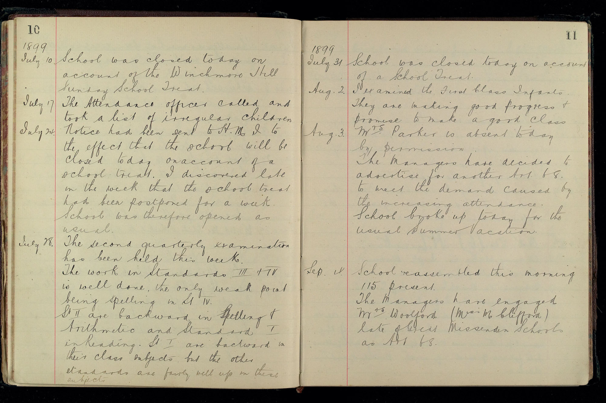 School Log 1899 to 1918
