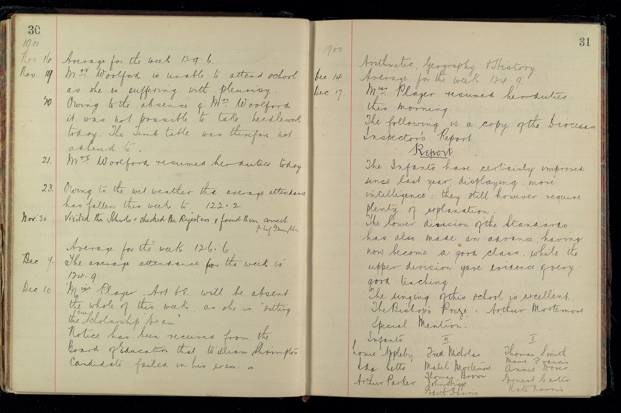School Log 1899 to 1918