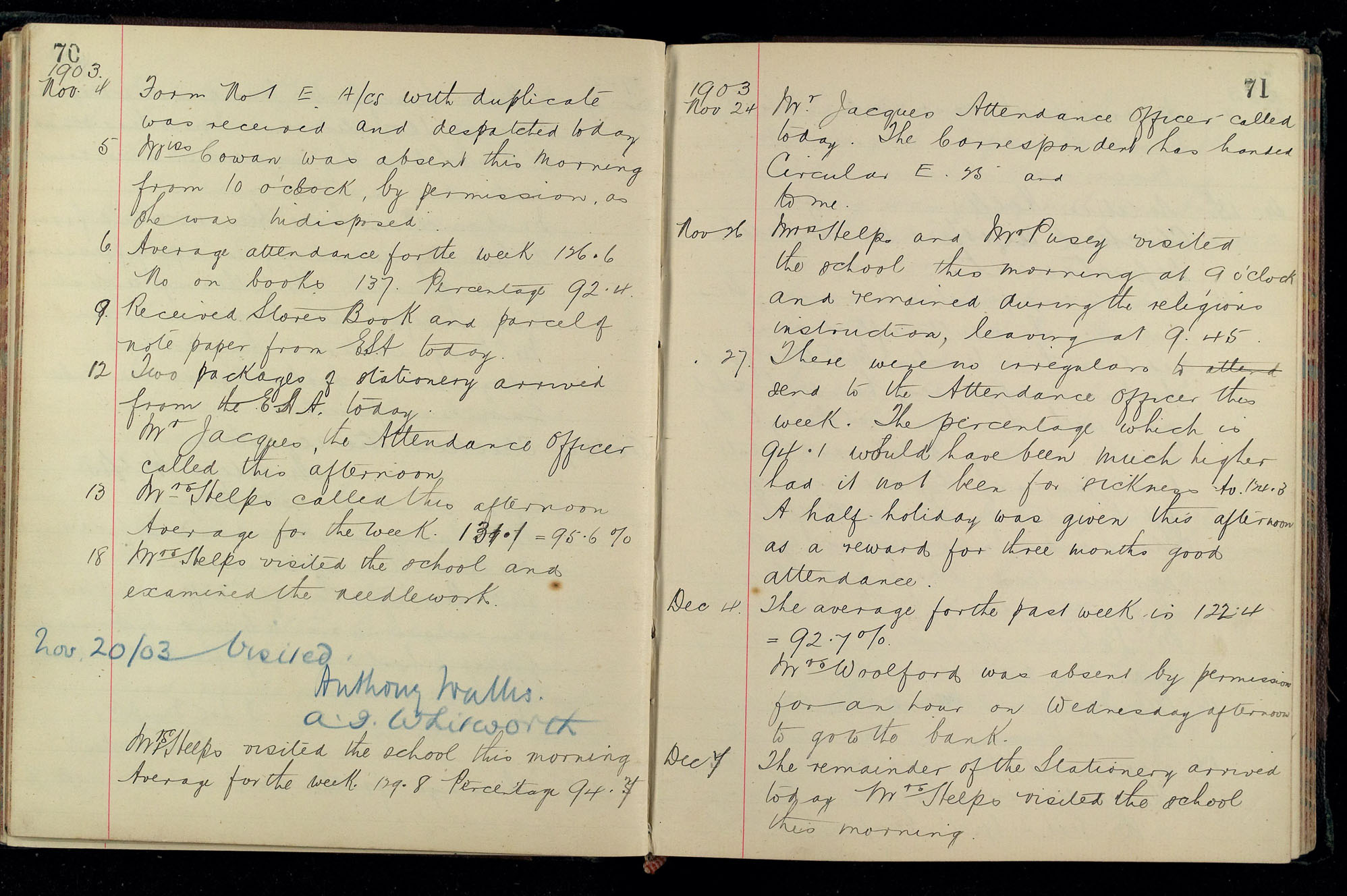 School Log 1899 to 1918