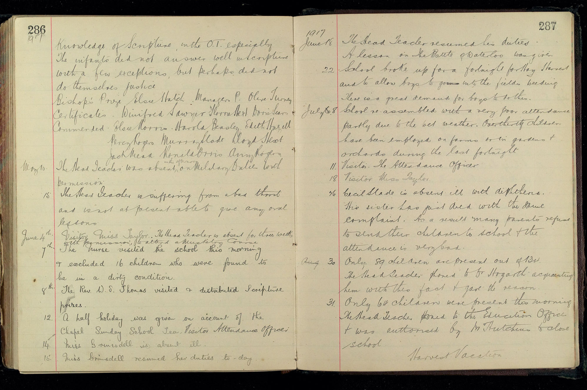 School Log 1899 to 1918