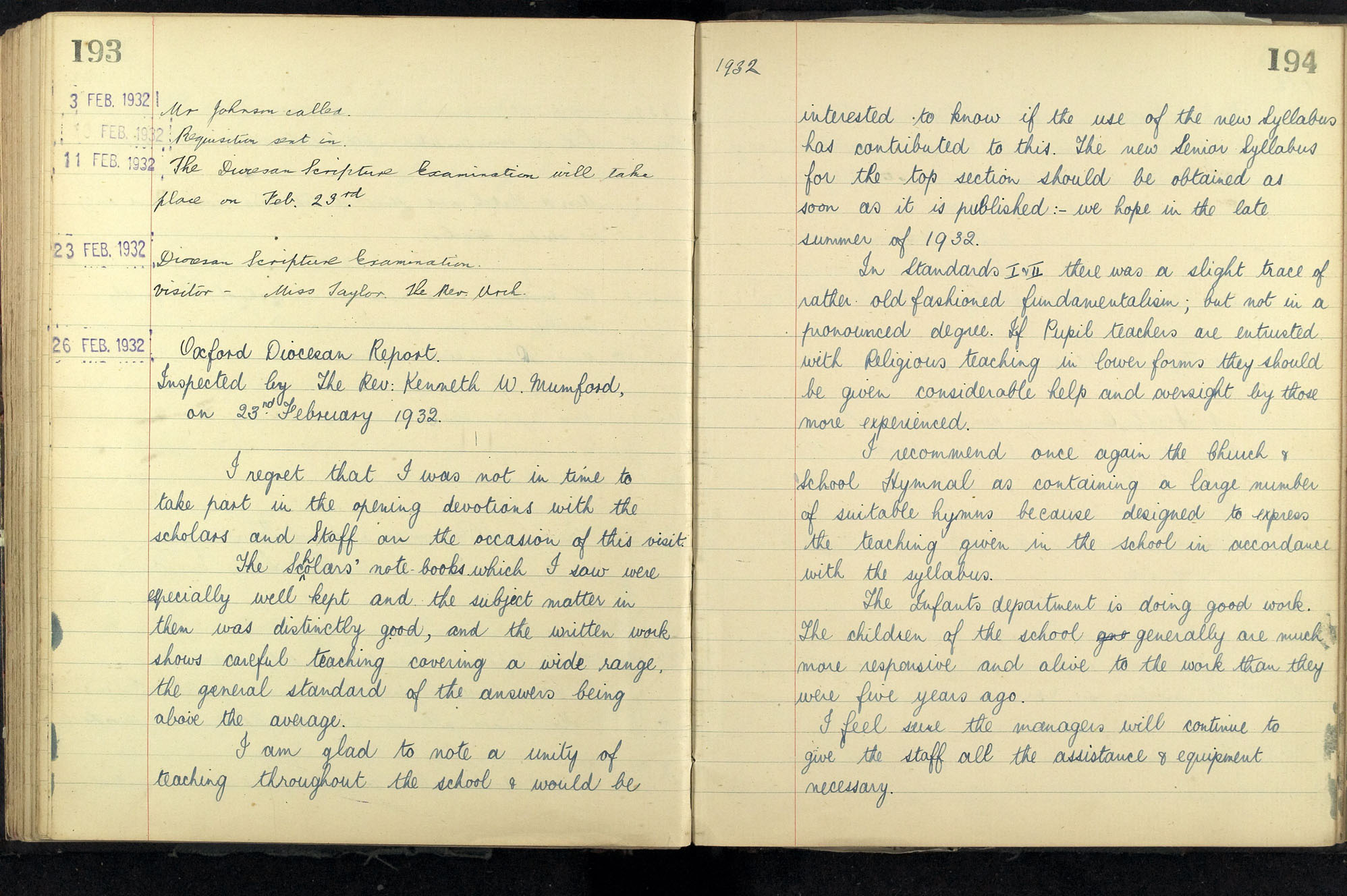 School Log 1918 to 1942