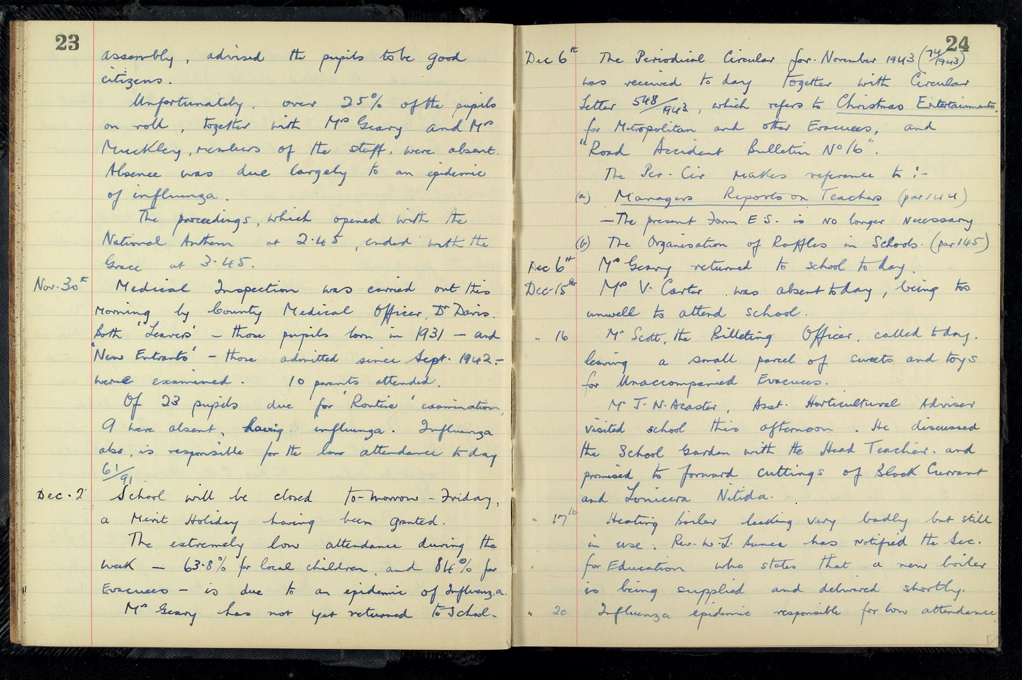 School Log 1943 to 1955