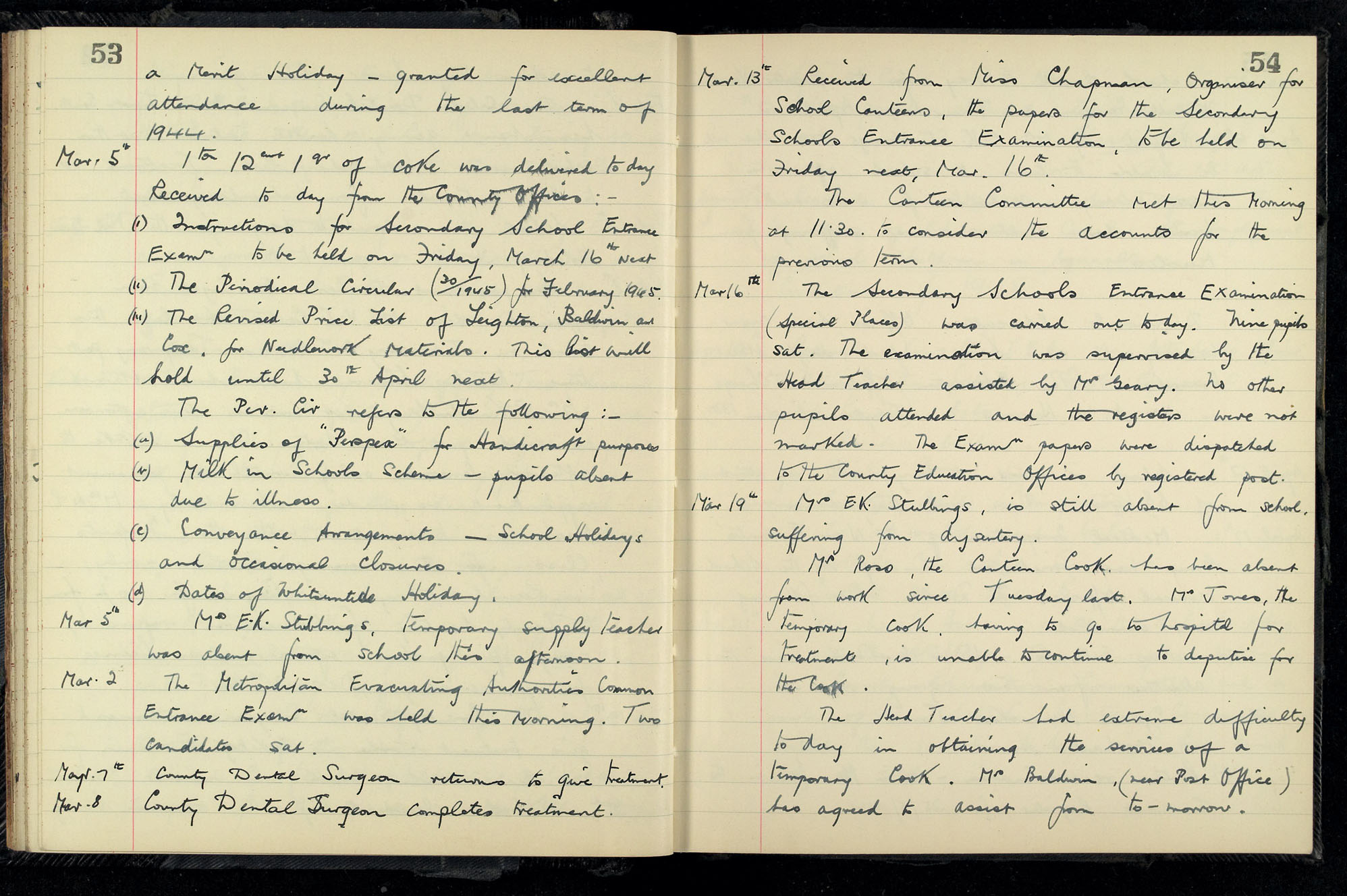 School Log 1943 to 1955