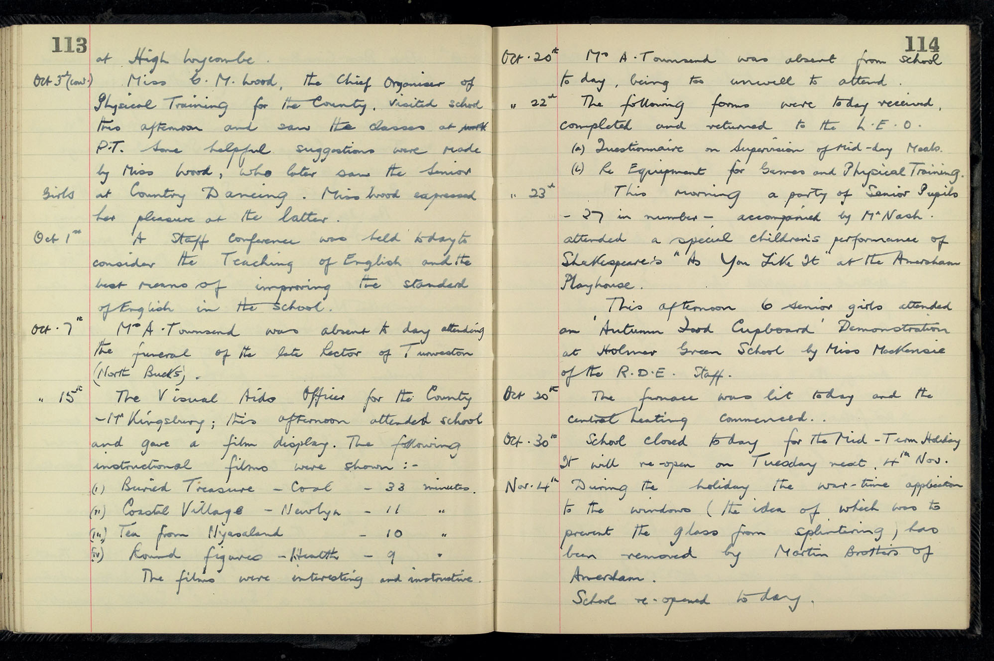 School Log 1943 to 1955