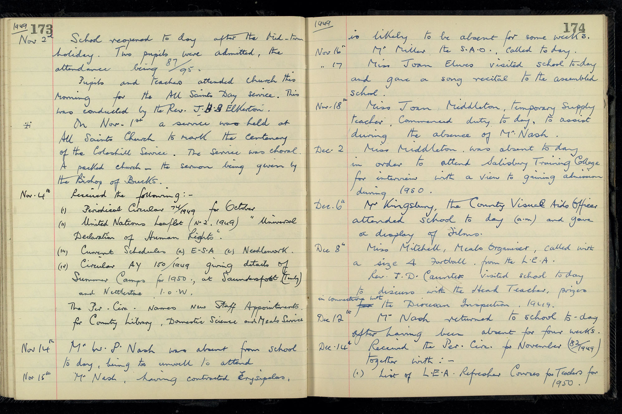 School Log 1943 to 1955
